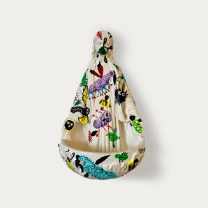 »Maria special edition«: diese einmalige Maria ist von uns "die drei Lamberts" natürlich erst einmal in Handarbeit aus Gips gegossen und dann den weißen Grund mit Fantasiegestalten bemalt.