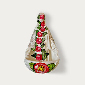 »Maria special edition« von den drei Lambert Schwestern im Handguss aus Gips gefertigt und der Grundton ein sattes grün lustvoll bemalt. Fantasievoll überrankt das immergrüne Efeu Ton in Ton diese einmalige Maria.