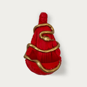 »Maria special edition« ist von den drei Lambert Schwestern im Handguss aus Gips gefertigt. Diese rote Maria wird von einer goldenen Schlange sehr plastisch umarmt.